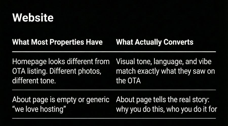 When your listing says one thing, your website says another, and your inquiry response says a third, guests don’t push through the confusion. They conserve energy. They default to clarity. They choose what feels obvious and skip what feels uncertain.