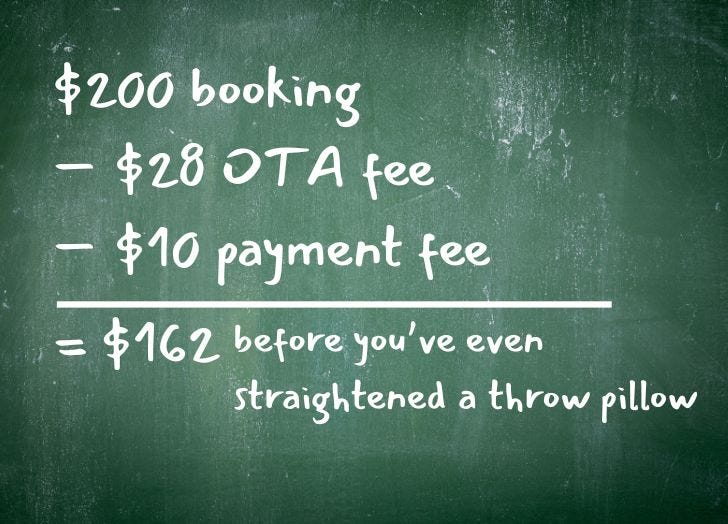 When Airbnb takes 14% and your payment processor grabs another 3–5%, you’re bleeding profit on every single reservation. The math is brutal:
