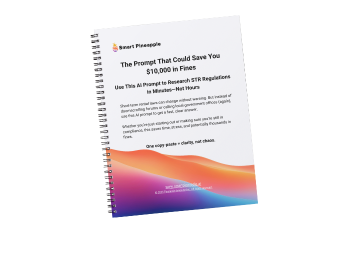 ResourcesHow to Avoid $10K Fines with One AI PromptShort-term rental laws can feel like a trap. This AI prompt helps you stay legal, fast—no lawyer, no guesswork.Kay WaltenAug 11, 2025115ShareSTR rules change fast—but you don’t need to lose sleep (or bookings) over it. Download your copy. You’re getting expert strategy for free - for now. That won’t last. Subscribe while it still costs you nothing.SubscribePreviousNext